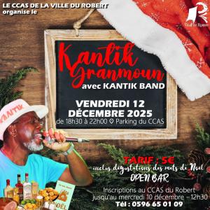 VENDREDI 12 DÉCEMBRE 2025 de 18h30 à 22h00 sur le parking du CCAS à Mansarde avec le groupe KANTIK BAND