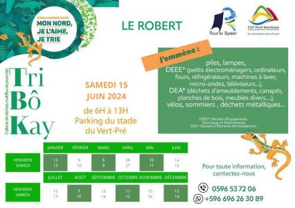 Afin de pallier au manque de déchèteries fixes existant sur le territoire martiniquais, Cap Nord et Seen Environnement ont décidé de créer une collecte multi-flux de déchets en apport volontaire, organisée tous les mois dans chacune des communes du Nord : Le Tri Bô Kay. Une équipe d'éco-animateurs se fera le plaisir d'accueillr et orienter les administrés sur le point de collecte.