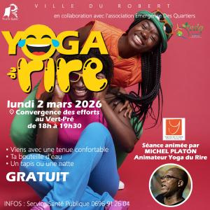 Le service Santé Publique de la Ville du Robert vous invite à participer à une séance du YOGA DU RIRE animée par Michel Platon, animateur du yoga du rire le lundi 2 mars 2026 à la Convergence des efforts du Vert-Pré de 18h à 19h30.