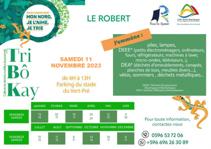Afin de pallier au manque de déchèteries fixes existant sur le territoire martiniquais, Cap Nord et Seen Environnement ont décidé de créer une collecte multi-flux de déchets en apport volontaire, organisée tous les mois dans chacune des communes du Nord : Le Tri Bô Kay. Une équipe d'éco-animateurs se fera le plaisir d'accueillir et orienter les administrés sur le point de collecte.