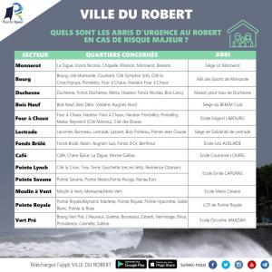 Présentation des différents abris d'urgence au Robert en cas de risque majeur: majeur:https://www.facebook.com/villedurobert/posts/pfbid02xN1ayGrnivsFDdDaWFs6...