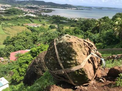 Samedi 17 octobre 2020, les pompiers du Robert sont intervenus pour sécuriser un rocher de 700 kilos qui menace de tomber sur des maisons d'habitations au quartier Duchene-Hauteur Pontaléry.