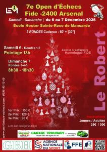 L'arsenal échecs organise son 7e Open Fide (-2400) le samedi 6 et dimanche 7 décembre 2025 à l'école Hector Sainte-Rose de Mansarde.