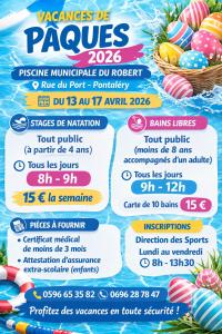 La piscine municipale du Robert vous propose pendant les vacances de Pâques du 13 au 17 avril 2026 :