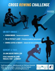 L’Aviron Club du Robert a le plaisir de vous inviter à la première édition du Cross Rowing Challenge, qui se tiendra le Samedi 28 juin 2025 à 15h30 à l'École Édouard DELEPINE de Moulin à Vent.