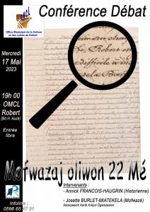Conférence débat " MOFWAZAJ OLIWON 22 MÉ " le 17 mai 2023 à l'OMCL ROBERT à partir de 19h.