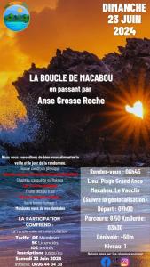 L'association RANDODECOUVERTEACTIVITE vous convie à une randonnée le dimanche 23 juin 2024 : La boucle de Macabou en passant par l'Anse grosse Roche. Rendez-vous à 6h45 à la plage de Grand Anse à Macabou au Vauclin