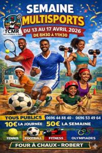 Le Tennis Club Municipal du Robert organise la Semaine Multisports du lundi 13 au vendredi 17 avril 2026 de 8h30 à 11h30 sur le court de tennis à Four à Chaux au Robert.